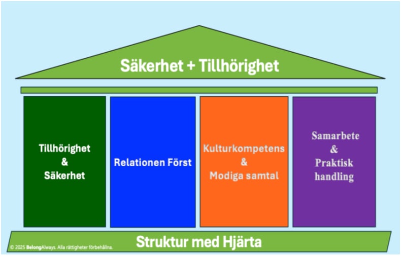 Tillhörighet, Relationer, Kulturkompetens och Praktisk handling – skapar den stabilitet som krävs för att barn, unga och vuxna ska kunna läka och växa. Vi ger er verktygen att navigera rätt när frågor om makt, kultur och ansvar blir obekväma, så att beslut kan fattas som håller hela vägen.